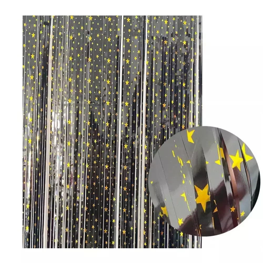 Штора изготовлена из высококачественной фольги, которая создает эффект сияния звездного неба, привлекая внимание гостей. Фольгированный материал обеспечивает долговечность и прочность, сохраняя свой блеск даже после многократного использования. Штора легко крепится на любые поверхности и может быть использована как внутри помещения, так и на открытом воздухе, что делает её универсальным элементом для любых декораций.