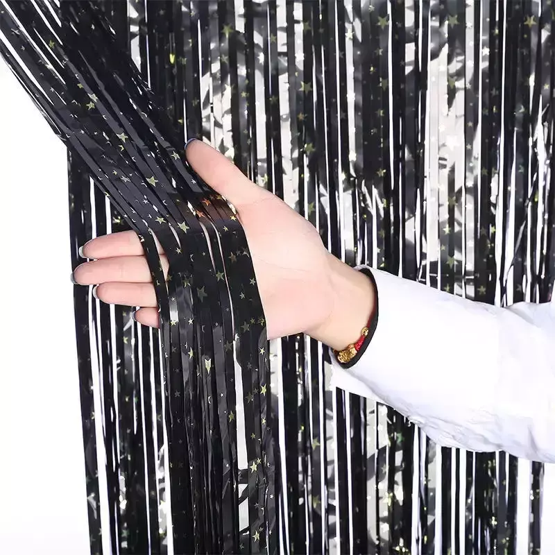 Дождик-штора "Звездное небо" фольгированная для украшения фотозоны, черный