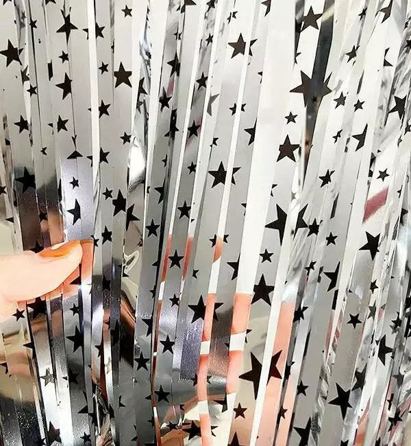 Штора изготовлена из высококачественной фольги, которая создает эффект сияния звездного неба, привлекая внимание гостей. Фольгированный материал обеспечивает долговечность и прочность, сохраняя свой блеск даже после многократного использования. Штора легко крепится на любые поверхности и может быть использована как внутри помещения, так и на открытом воздухе, что делает её универсальным элементом для любых декораций.