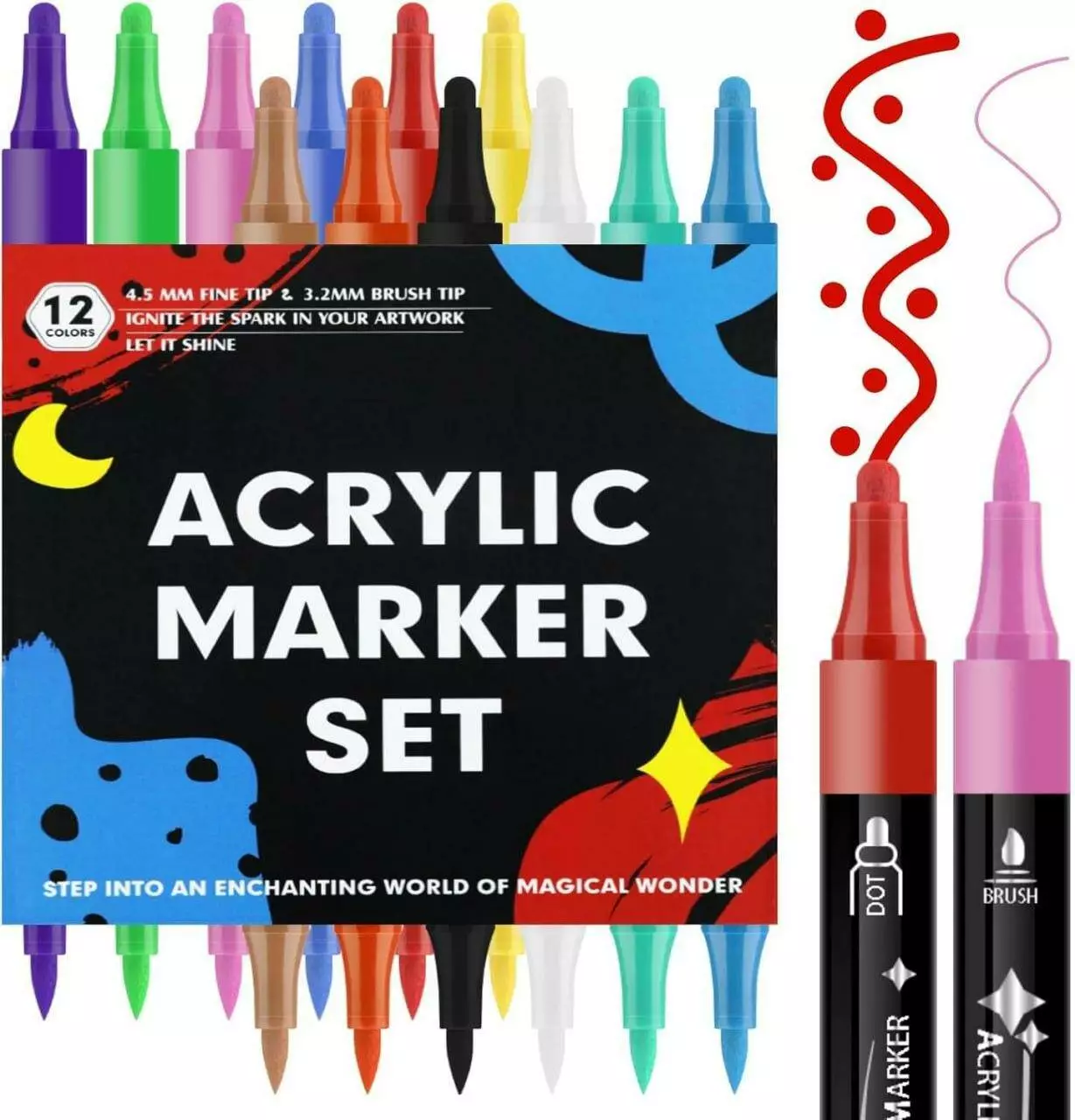 Двусторонние акриловые маркеры, 12 цветов, для рисования на стекле, дереве, ткани, качественные маркеры