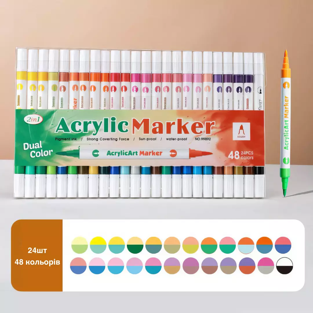 Двусторонние акриловые маркеры, 24 шт. (48 цветов), универсальный набор для бумаги, стекла, дерева, ткани