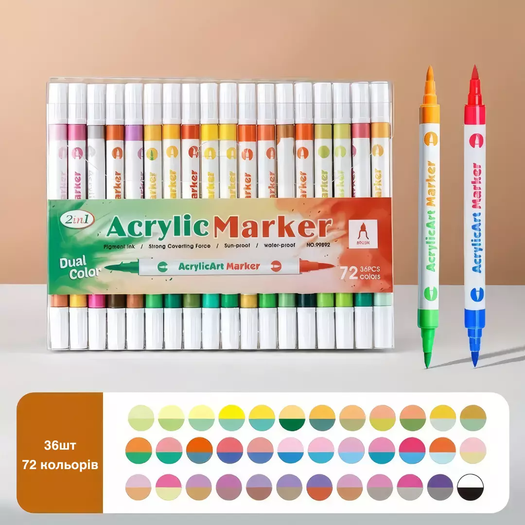 Двусторонние акриловые маркеры, 36 шт. (72 цвета), на водной основе, художественный комплект для рисования