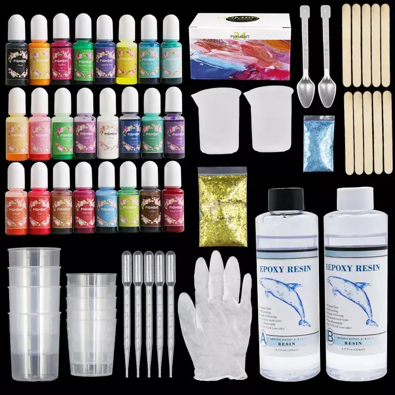 Эпоксидная смола с аксессуарами, набор для рукоделия, 24 цвета пигментов