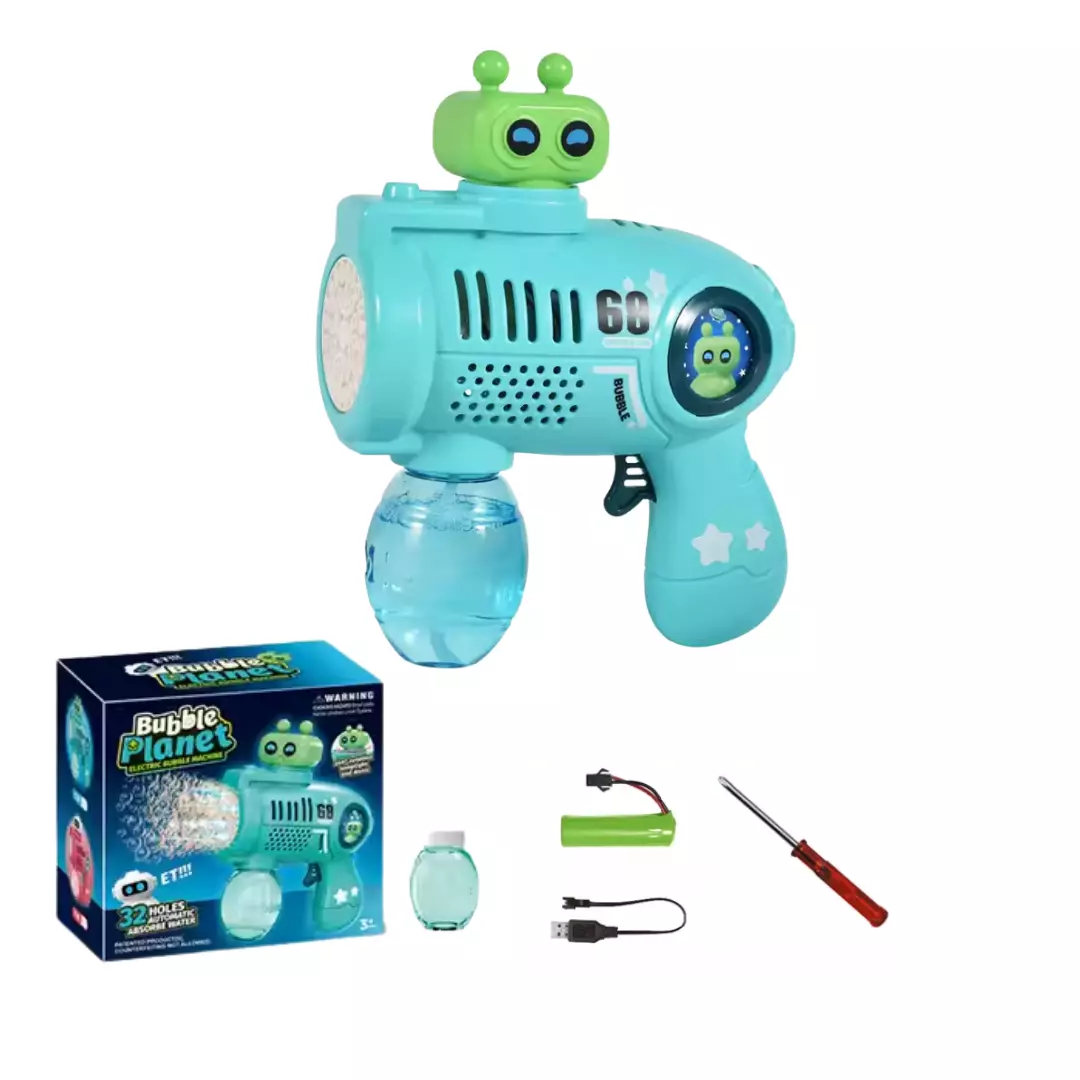 Создайте атмосферу радости с автоматическим пузырьковым пистолетом! Игрушка оснащена 32 отверстиями, выпуская сотни переливающихся пузырей за секунды. LED-подсветка и музыкальное сопровождение делают игру еще более увлекательной, особенно в вечернее время.