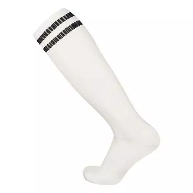 Гетры футбольные с полотенечной тканью на подошве белые с черными полосками CZST-314, размер L