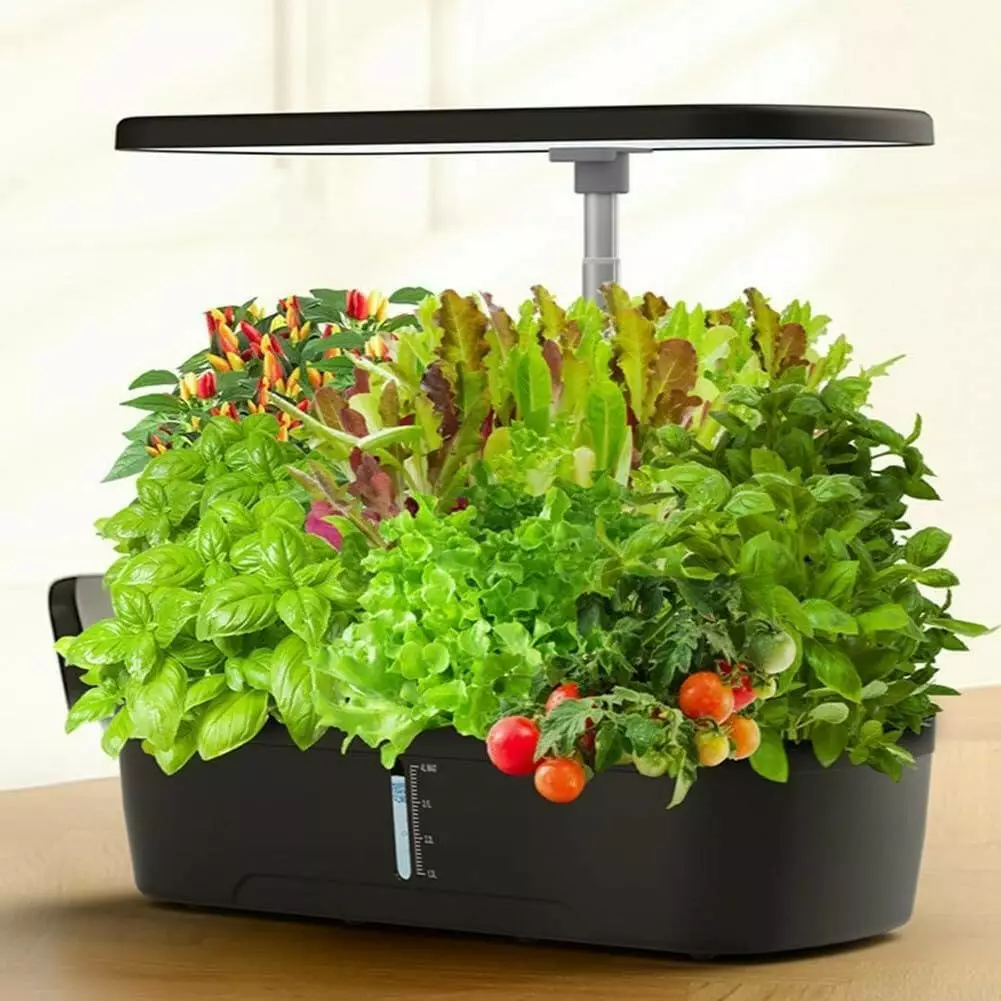 Светодиодная система включает 64 белых, 55 жёлтых, 15 красных и 5 синих диодов, обеспечивая растениям нужный спектр света на всех этапах роста. Встроенный насос работает циклично — 5 минут включения и 25 минут покоя — для равномерного распределения влаги. Управление осуществляется одной кнопкой, с возможностью выбора одного из трёх режимов: для овощей, специй или фруктов. Идеально подходит как для начинающих, так и для опытных пользователей.