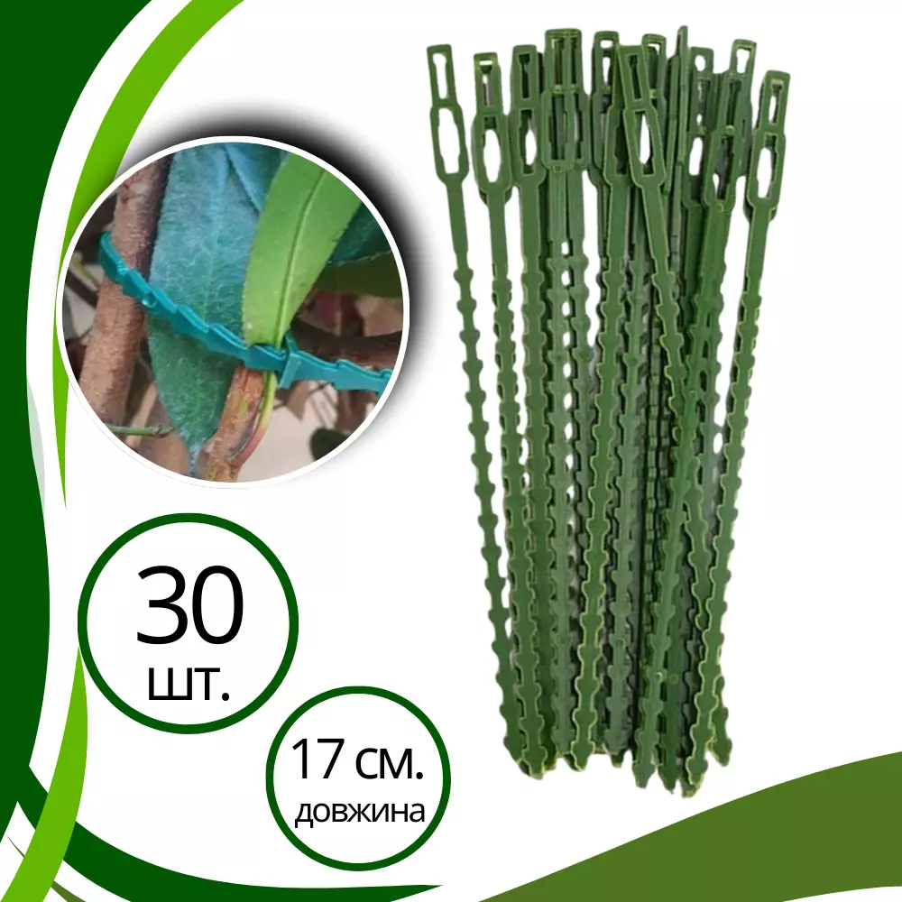 Хомуты садовые, подвязки для растений 30 шт,многоразовые пластиковые стяжки длина 17 см цвет зелёный
