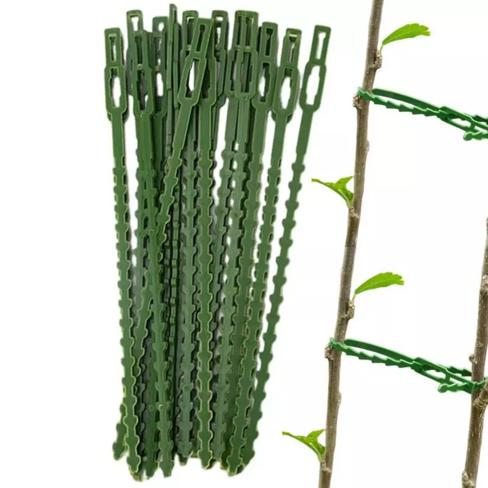 Длина каждого хомута — 17 см, что делает их универсальными для подвязки растений разной высоты и толщины. Простая конструкция обеспечивает лёгкость в применении и быструю фиксацию. Зелёный цвет делает подвязки малозаметными на фоне листвы.