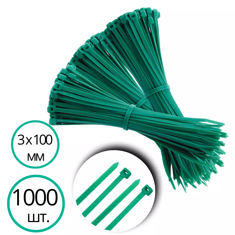 Хомуты стяжки пластиковые, кабельные 1000 шт в упаковке, хозяйственные 3х100 мм цвет зелёный