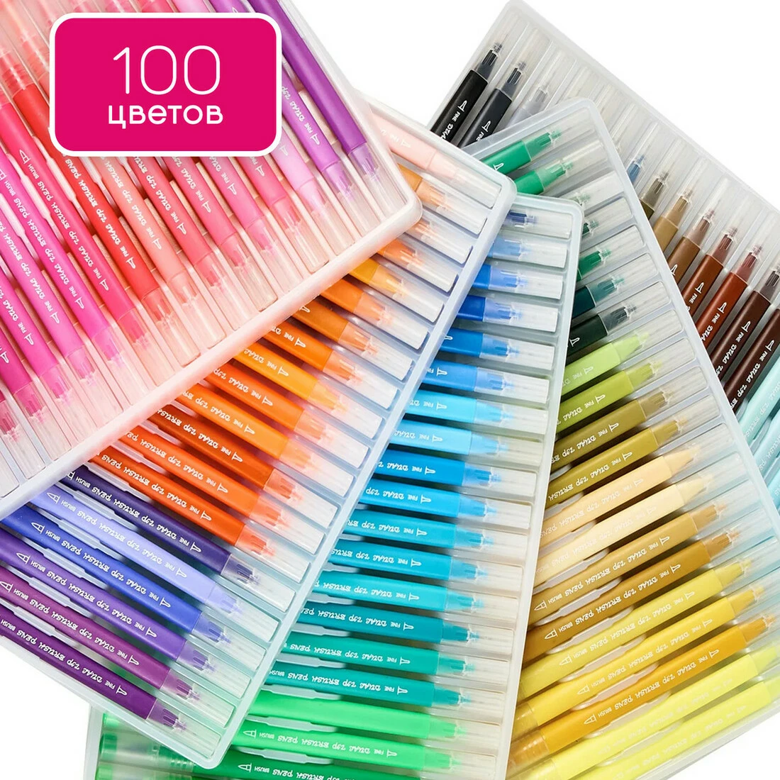 Набор акварельных маркеров Brush для скетчинга и рисования 100 цветов, маркеры Brush акварельные двусторонние