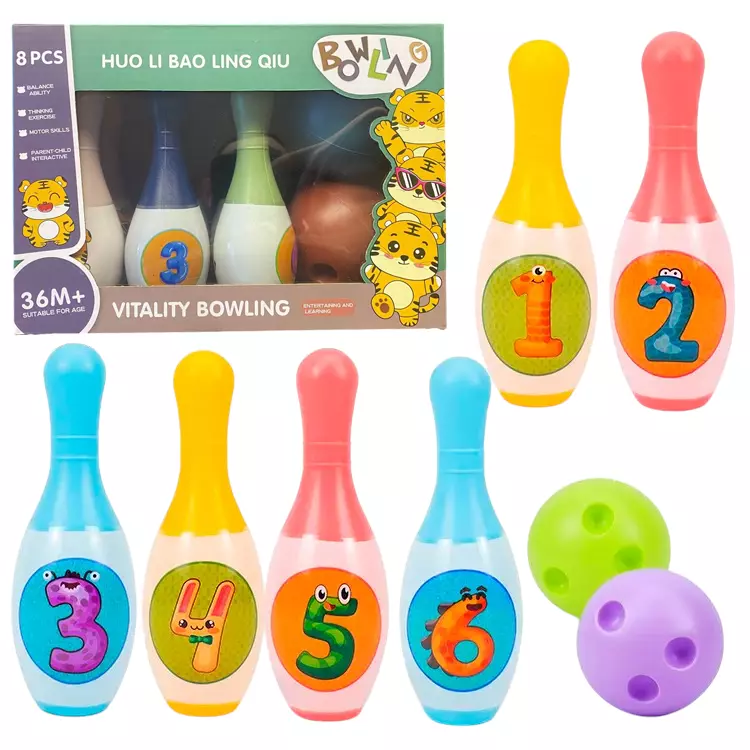 Комплектация: 6 кеглей, 2 шара для боулинга