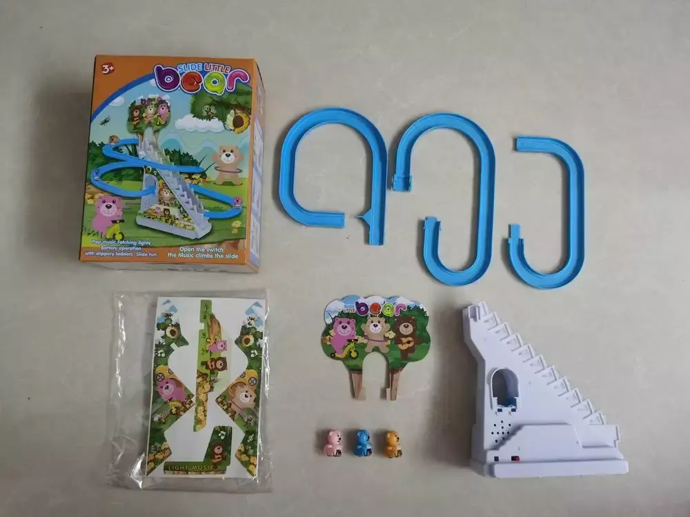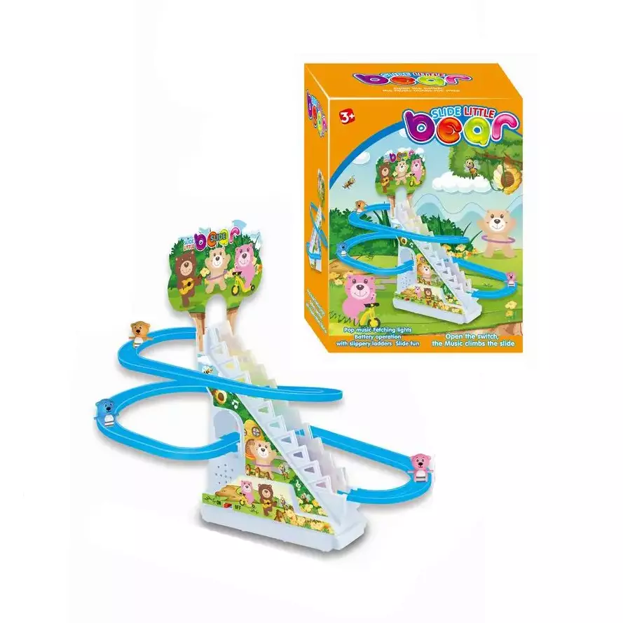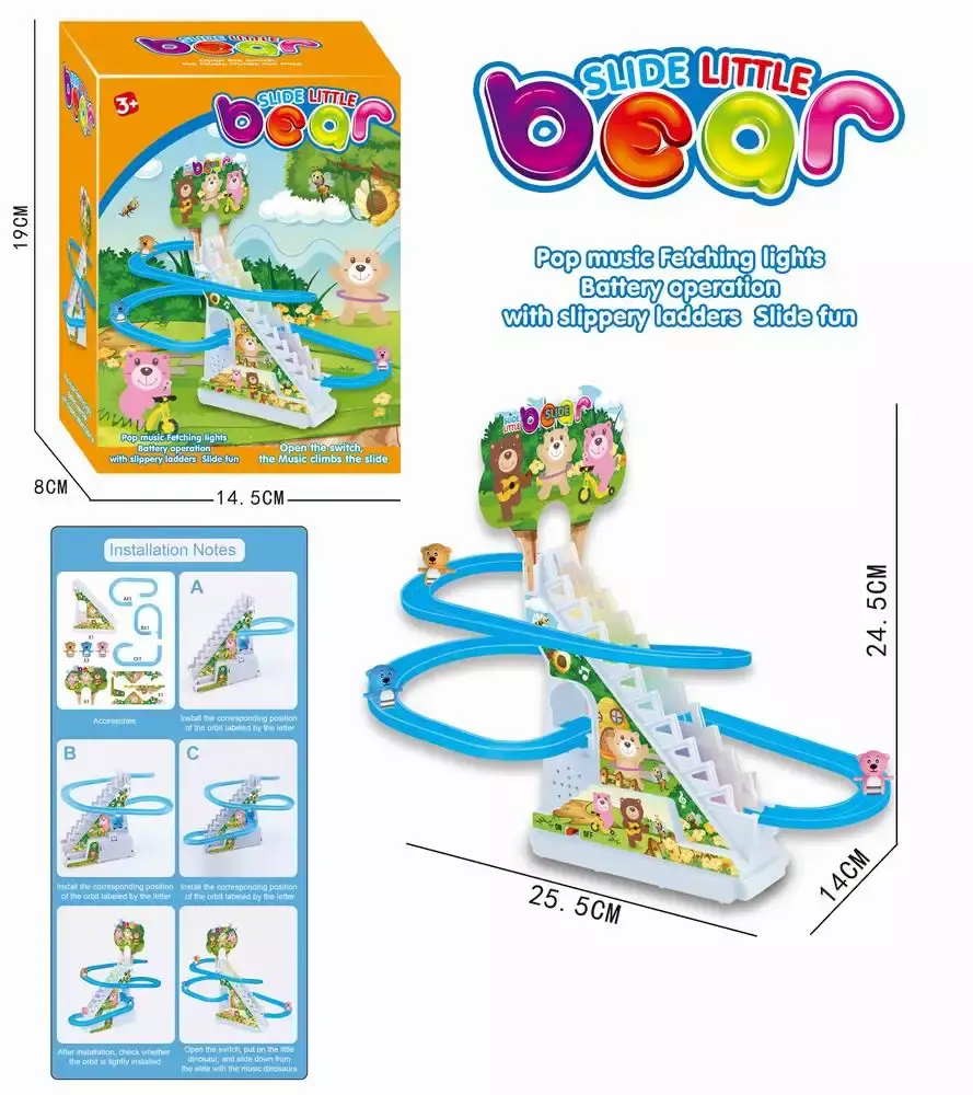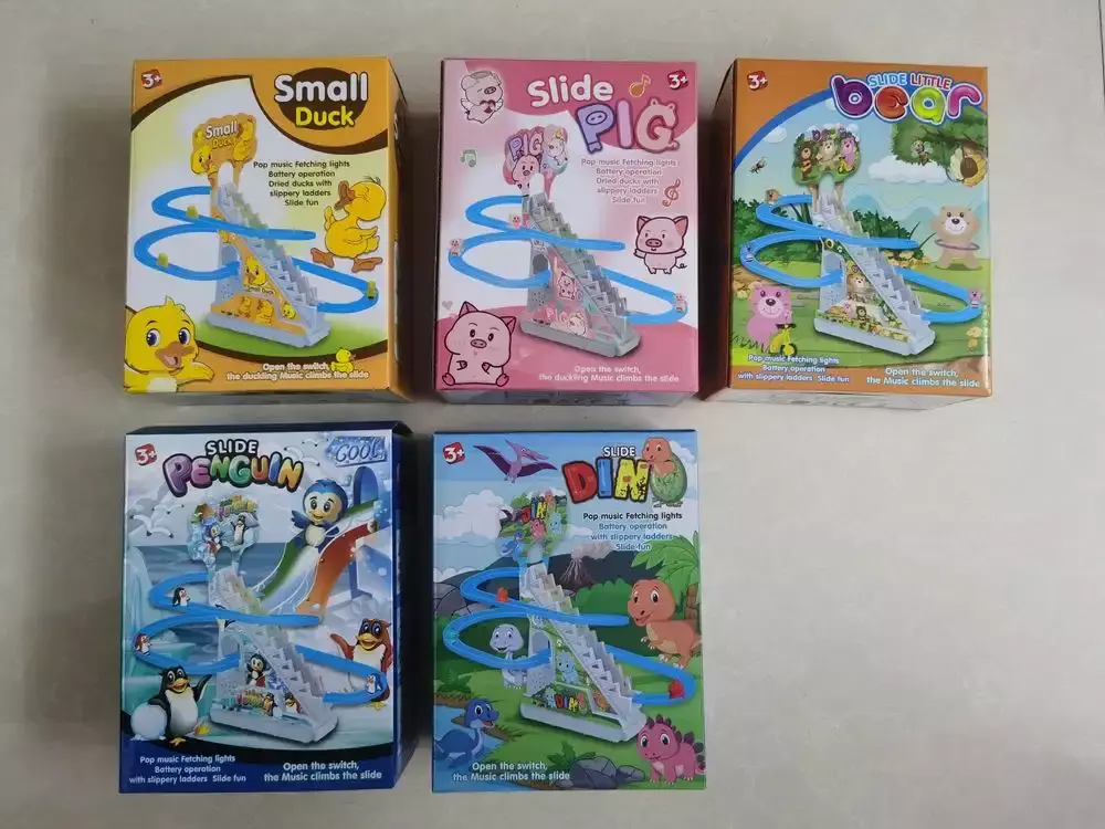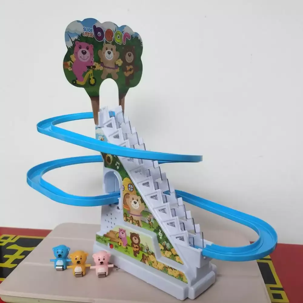 трека, три игрушки могут подниматься по лестнице и скользить по