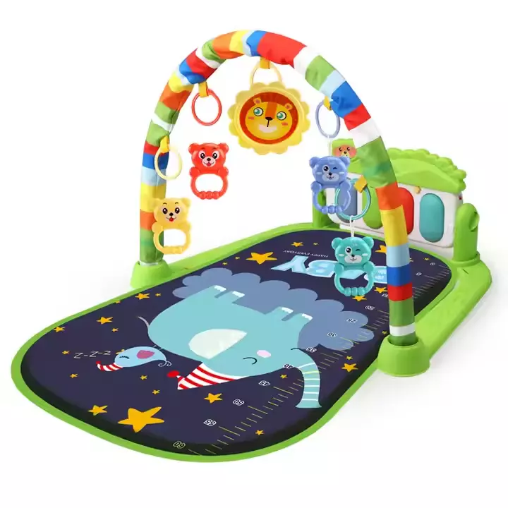 Игровой детский коврик с музыкальным пианино, подвесными игрушками, шкалой роста, принт зеленый слон