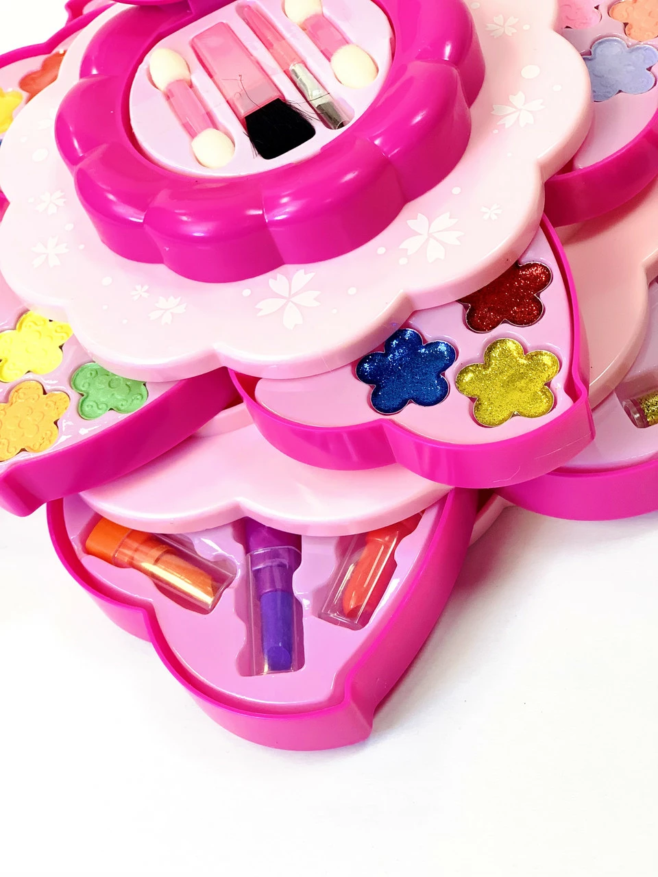 Подарочный набор косметики девочке -цветок,2 яруса, тени, набор для маникюра, помада,