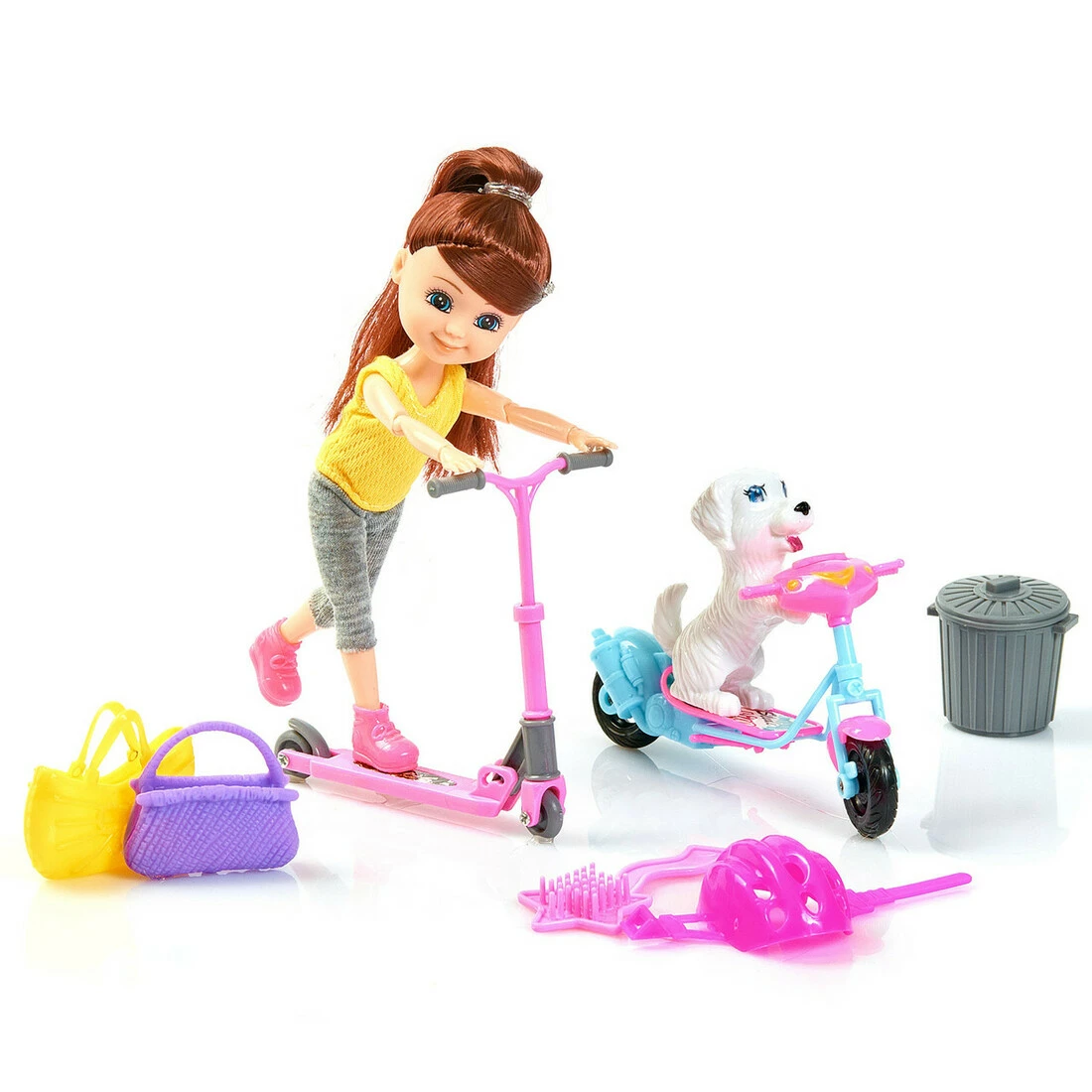 Игровой набор с куклой и собакой на самокате Gaga & Love.Набор для девочки кукла с питомцем.