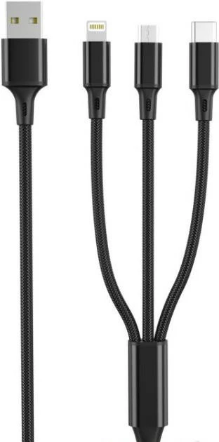 Кабель USB универсальный 3в1 XO NB173 USB - Lightning + MicroUSB + Type-C 1.2М Черный
