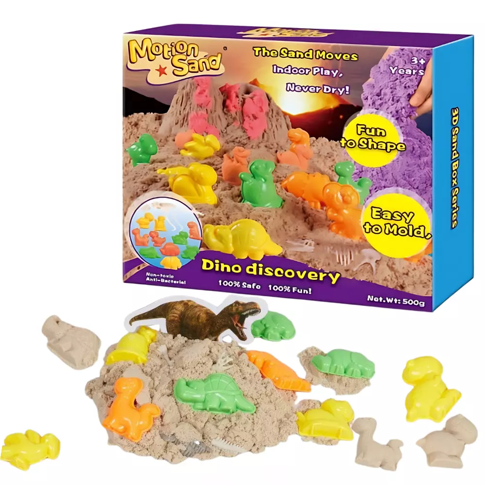 Кинетический песок для детей,набор "Dino Discovery",масса для лепки, для детского творчества с формочками