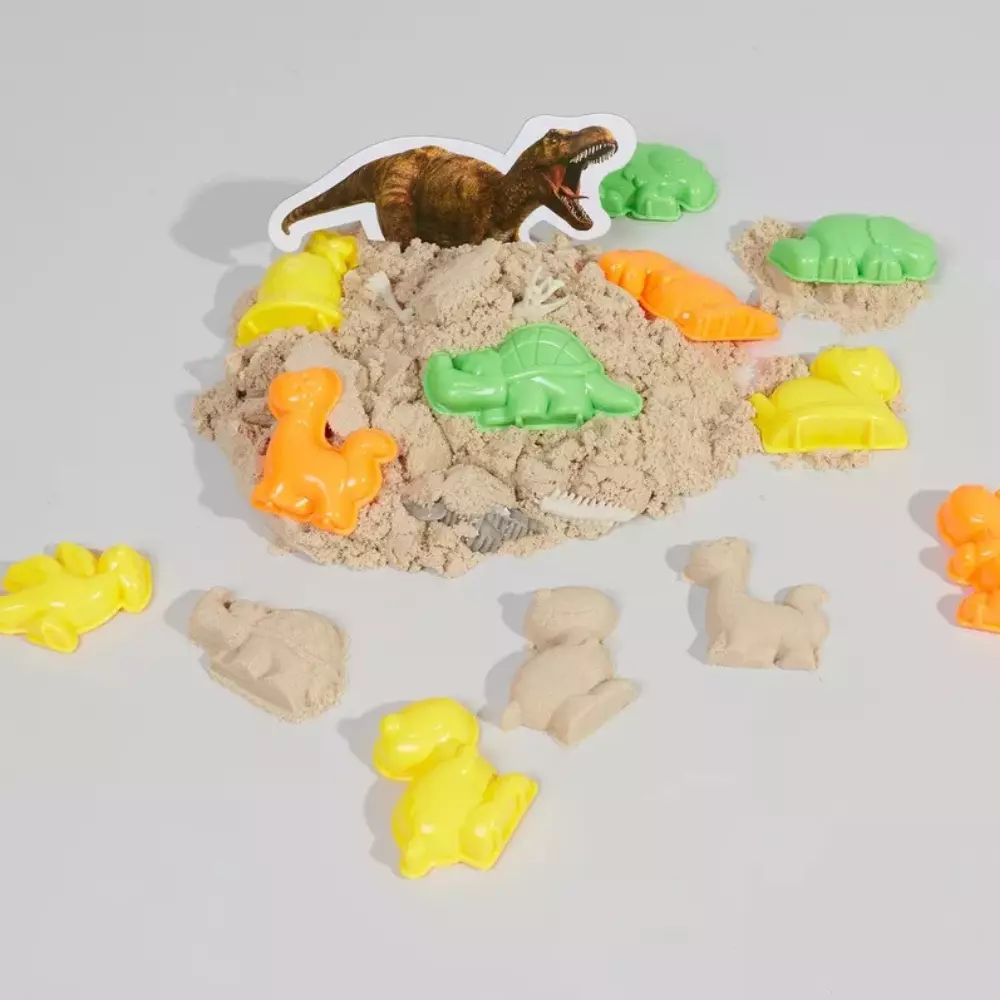 песка, 11 пластиковых формочек в виде динозавров и 3D-коробка из