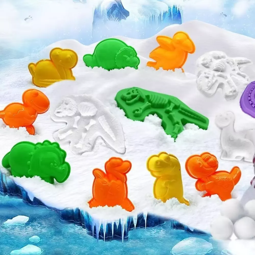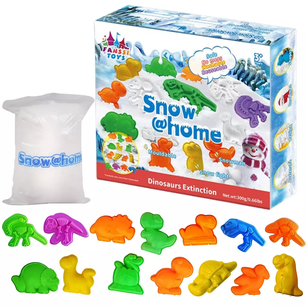 лепить фигуры динозавров из искусственного снега прямо у себя дома.