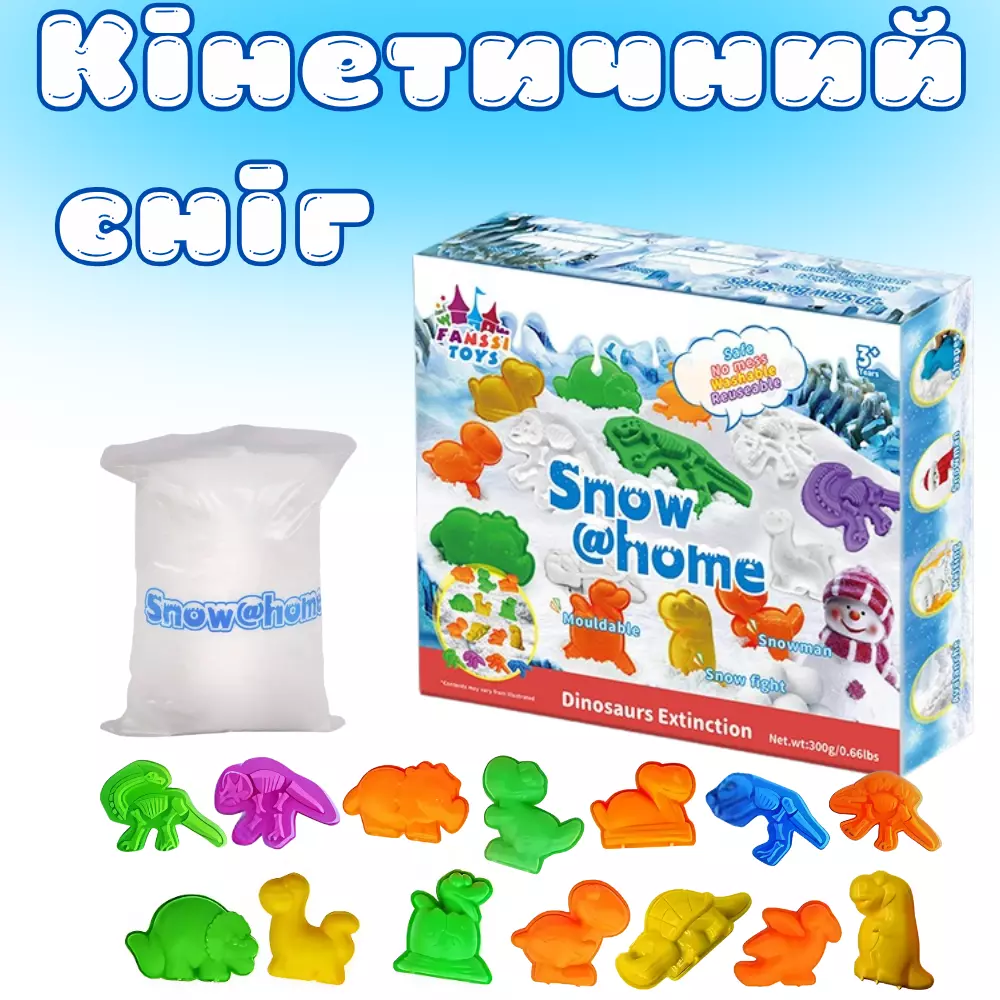 Кинетический снег,песок детский,набор "Dinosaurs",масса для лепки, для детского творчества с формочками