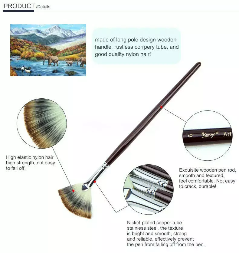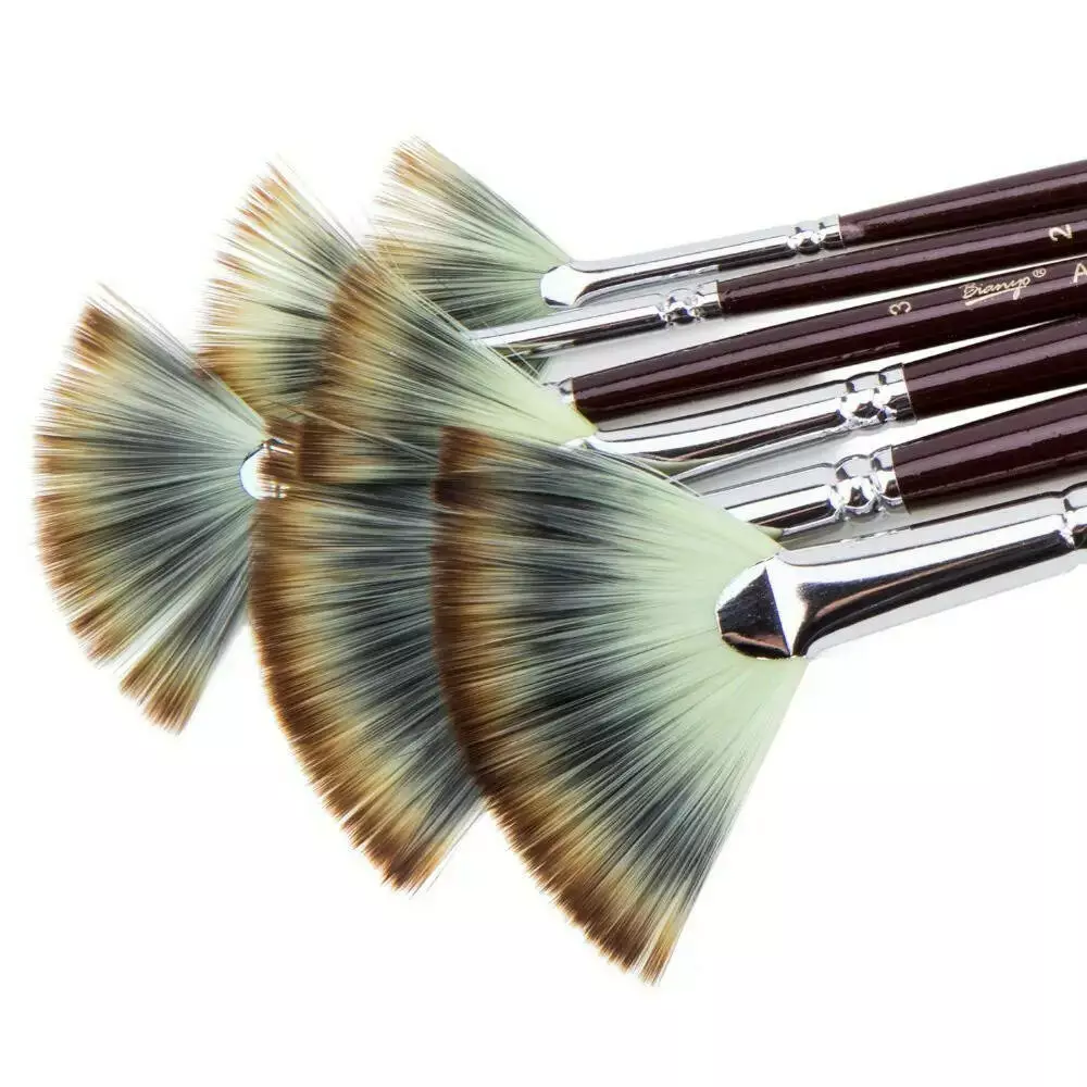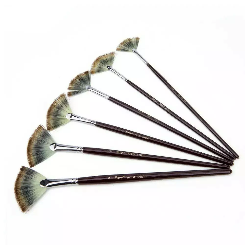 Кисточки веерообразные нейлоновые для гуаши, акварельных, акриловых и масляных красок, 6 шт