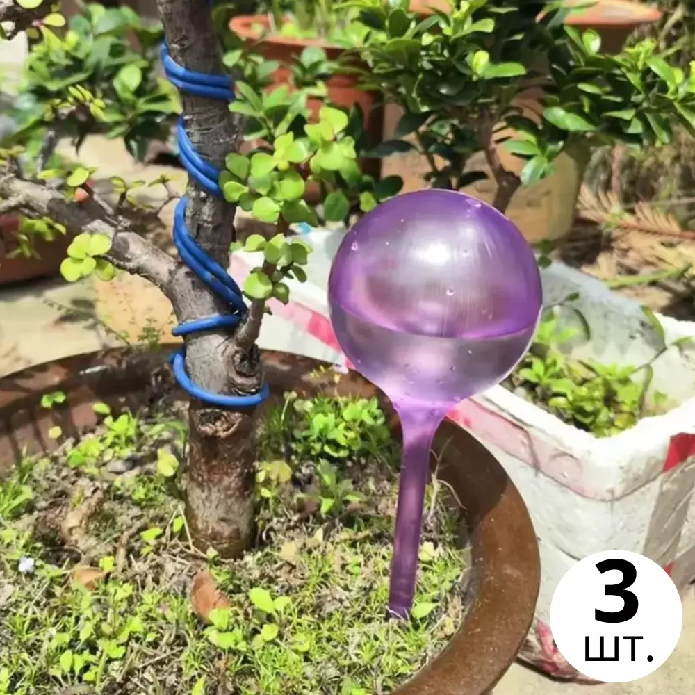 Колба для автоматического полива | Вазон в виде шара для сада, 3шт, капельный автополив, 8×25см, фиолетовый