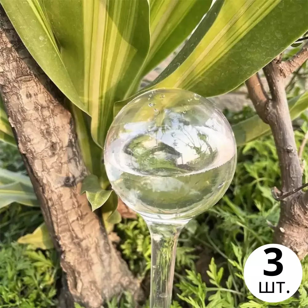 Колба для автоматического полива | Вазон в виде шара для сада, 3шт, капельный автополив, 8×25см прозрачный