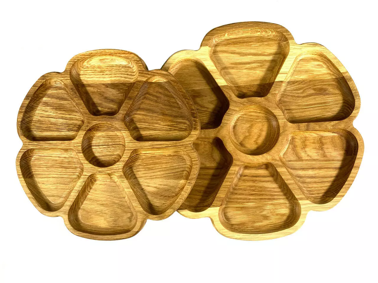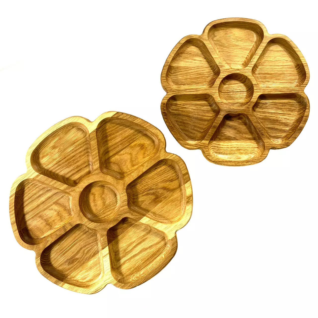 Каждая тарелка изготовлена из цельного дерева толщиной 2 см и вырезана с разнообразными емкостями, идеальными для подачи разнообразных закусок. От вкусных фруктов до аппетитных орехов, они будут выглядеть очень привлекательно на наших тарелках.