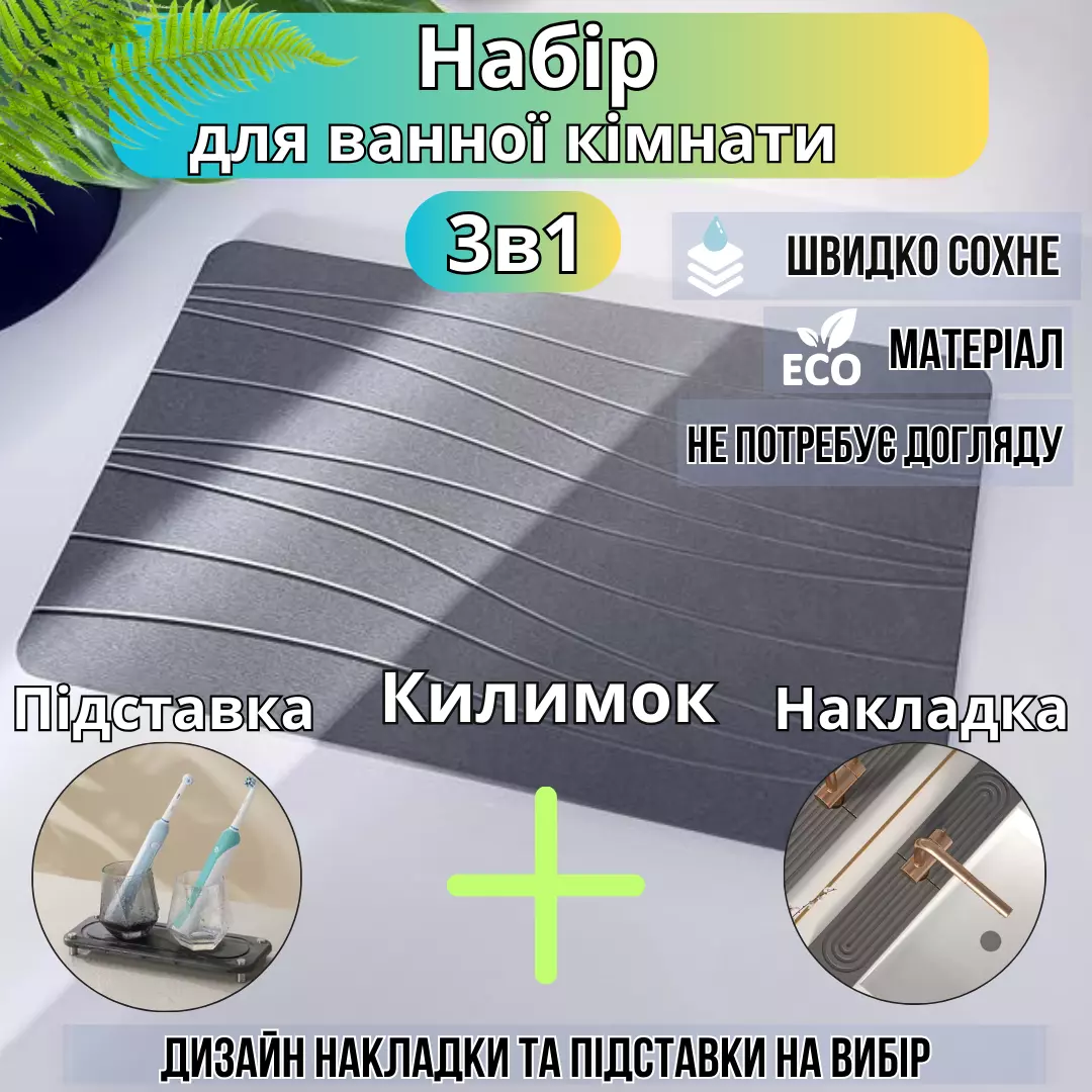 Комплект для душа и ванной комнаты коврик для ног,накладка-коврик на раковину,подставка цвет тёмно-серый