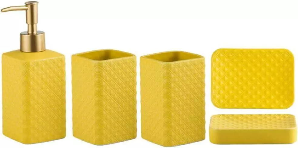 Набор керамических аксессуаров для ванной комнаты в желтом цвете:
