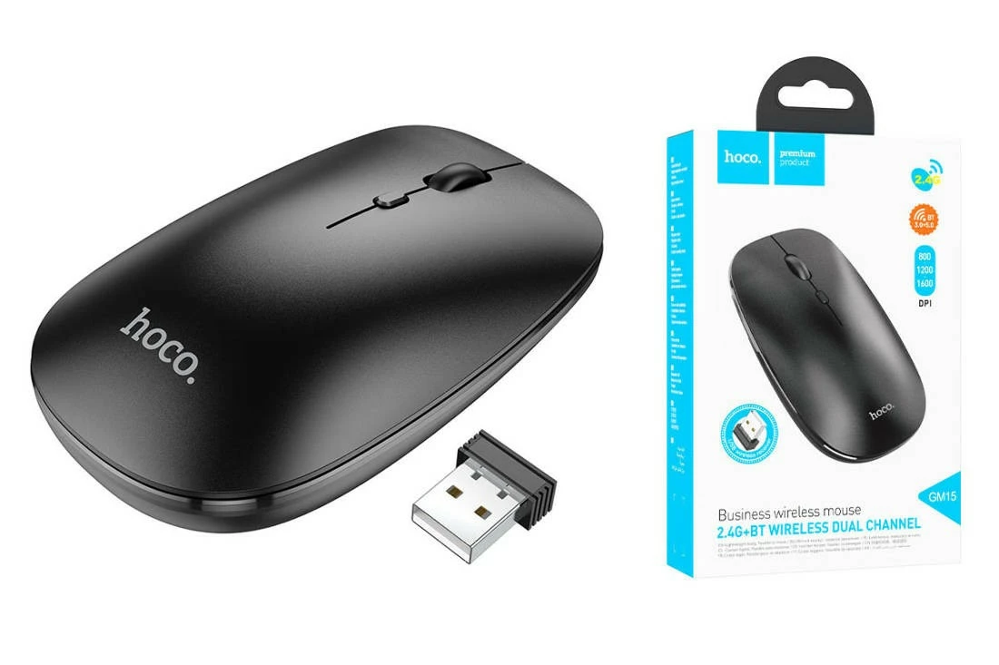 Компьютерная мышка беспроводная Hoco GM15 мышь 800 / 1200 / 1600 dpi Черная