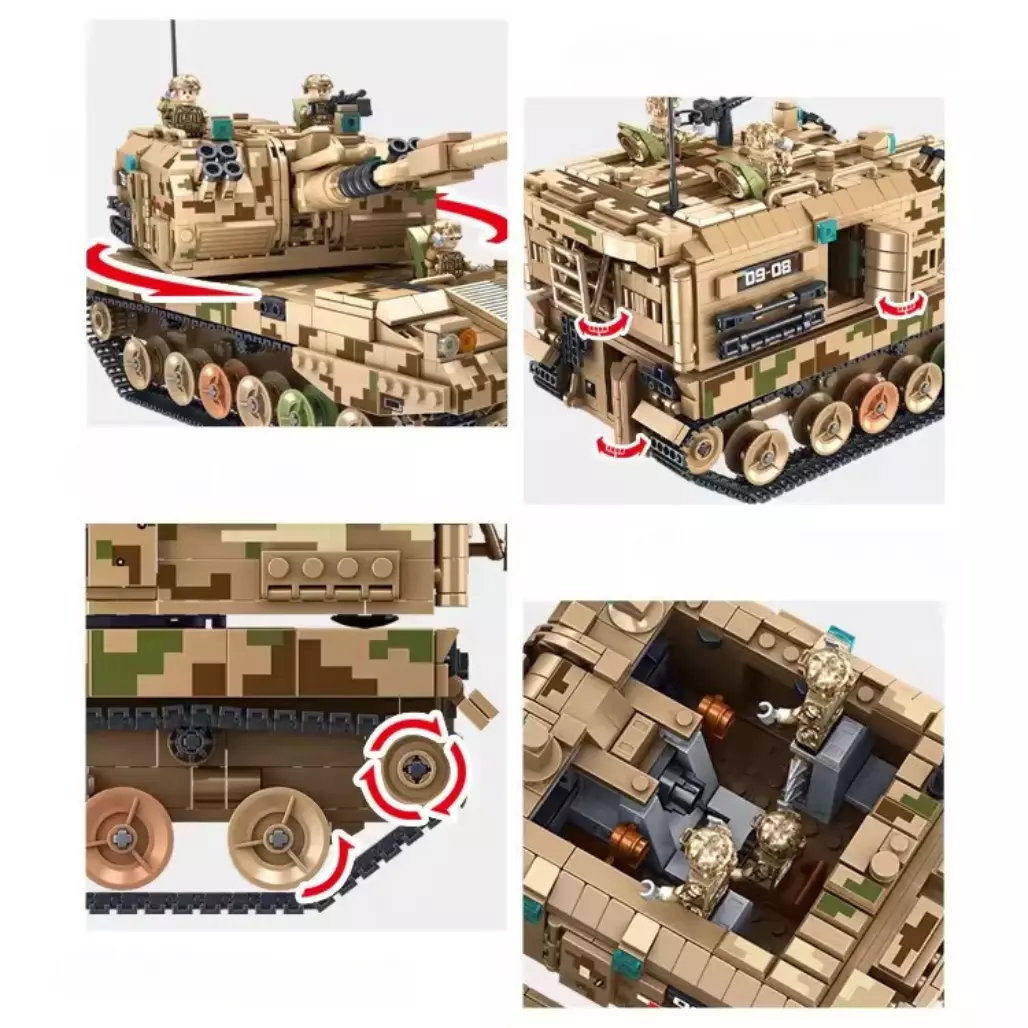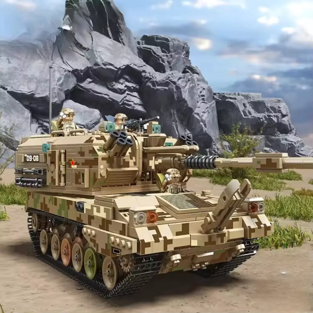 Конструктор детский.Самоходная артиллерийская установка военный танк 1648 детали, хаки