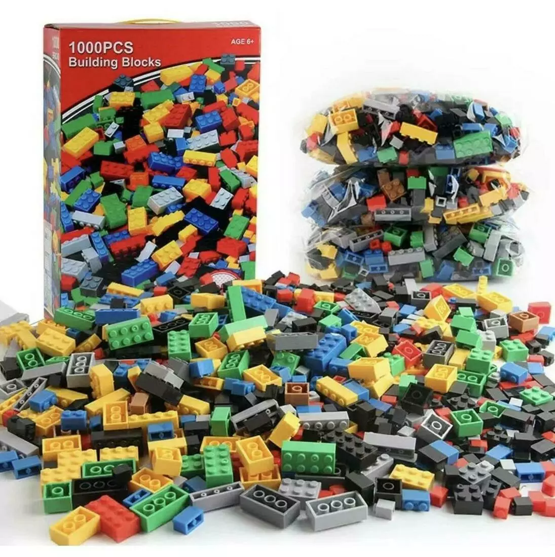 В наборе1000 разноцветных кубиков из которых малыш может сделать разнообразные конструкции.