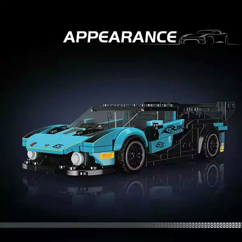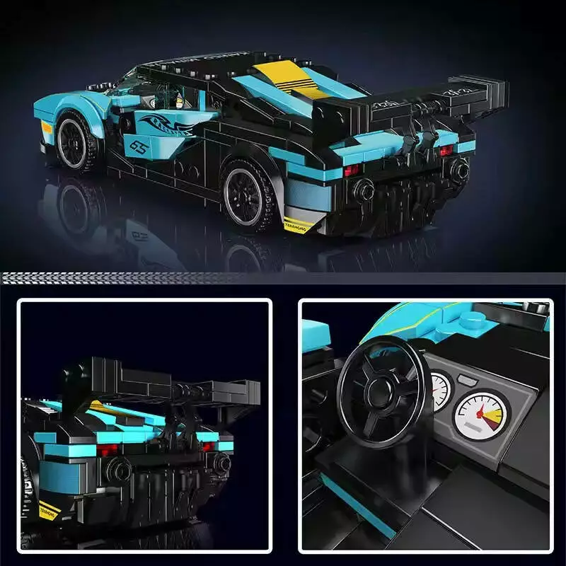 Конструктор Гоночная спортивная машина на 383 детали,голубая