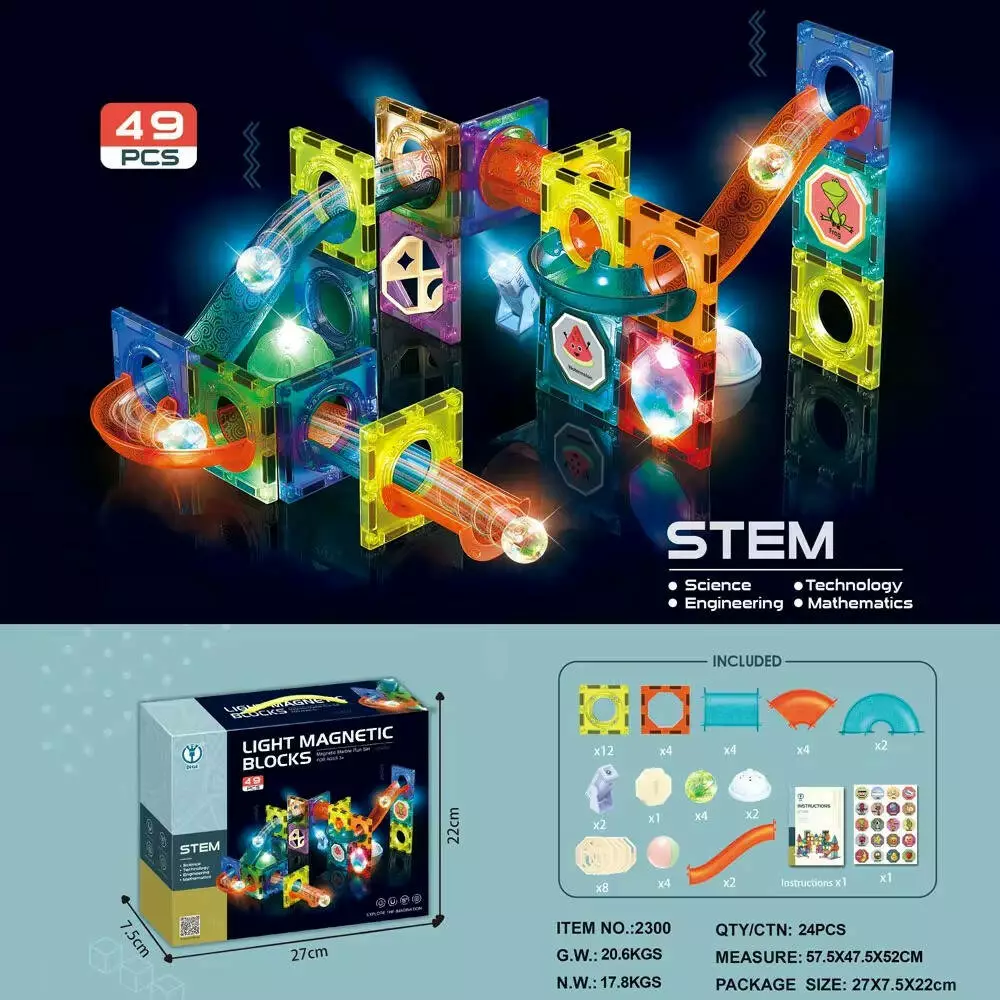 Конструктор магнитный лабиринт разноцветный светящийся на 49 деталей