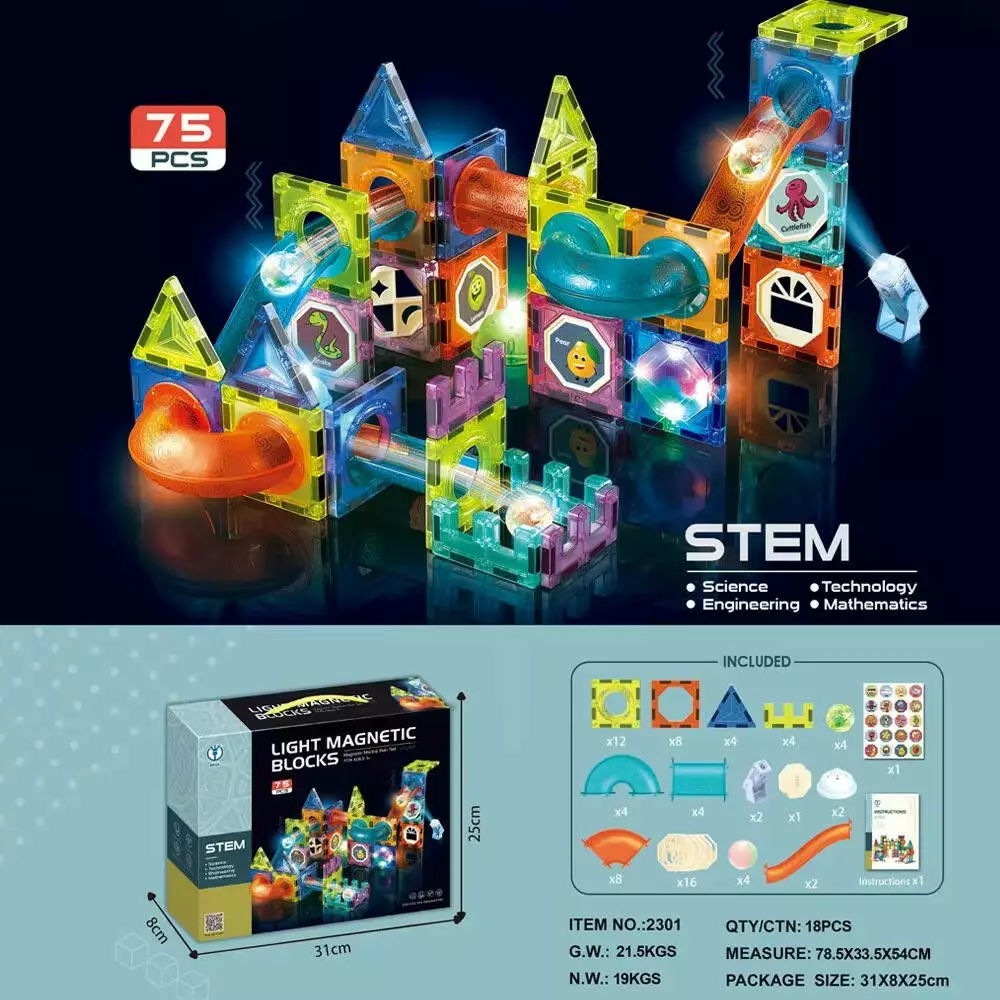 Конструктор магнитный лабиринт разноцветный светящийся на 75 деталей