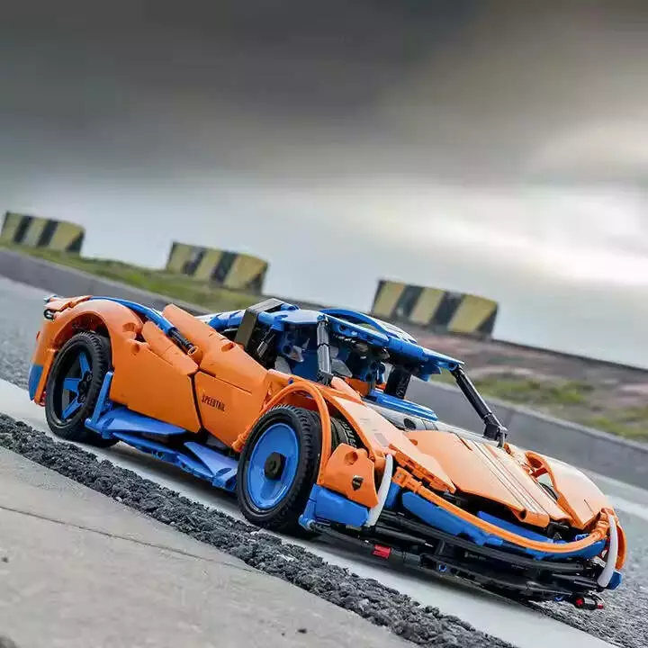 Конструктор спортивная машина Pagani на управлении на 1883 детали,цвет синий с оранжевым