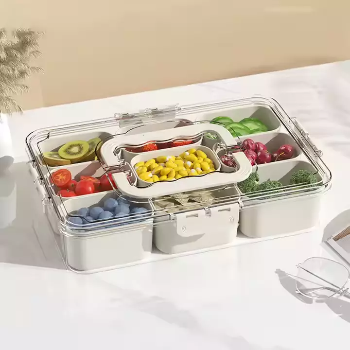 Контейнер для закусок с крышкой и ручками, органайзер для хранения на 9 ячеек, размер 32×21×7 см