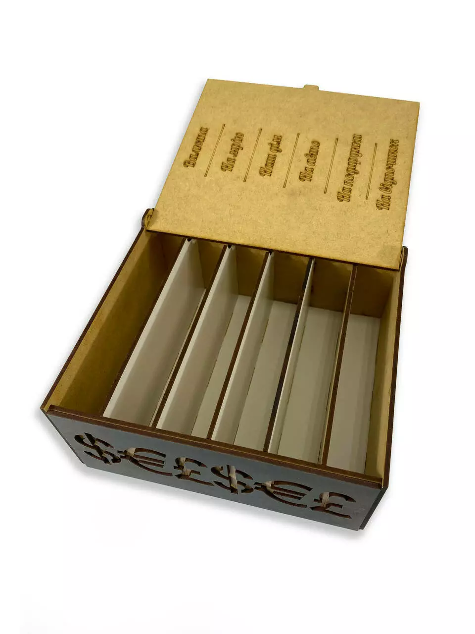 Эта коробка не просто хранит ваши сбережения, она служит символом ваших мечтаний и целей. С помощью этого органайзера вы сможете систематизировать свои финансовые усилия и наслаждаться процессом достижения своих желаний.