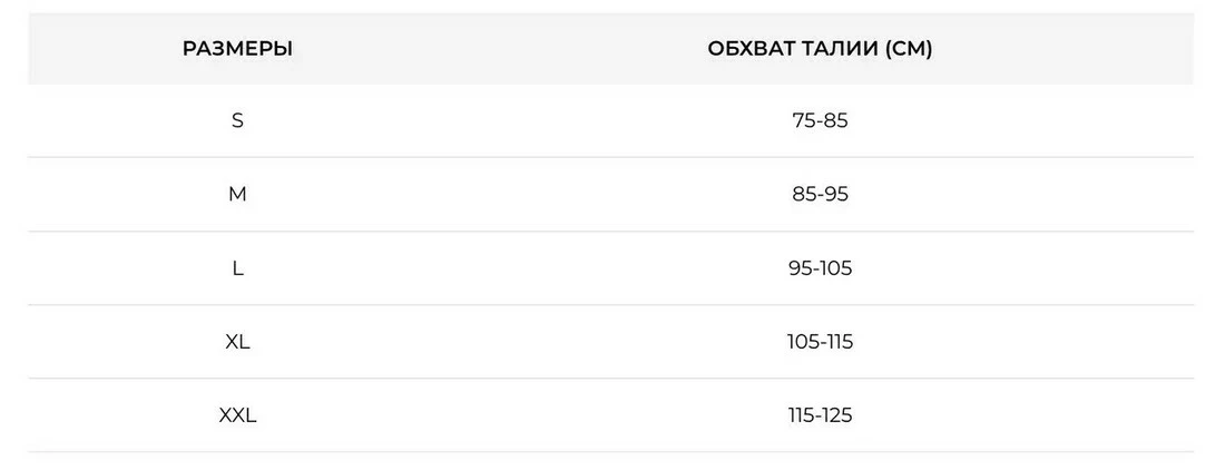 РАЗМЕРЫ ОБХВАТ ТАЛИИ (CM)