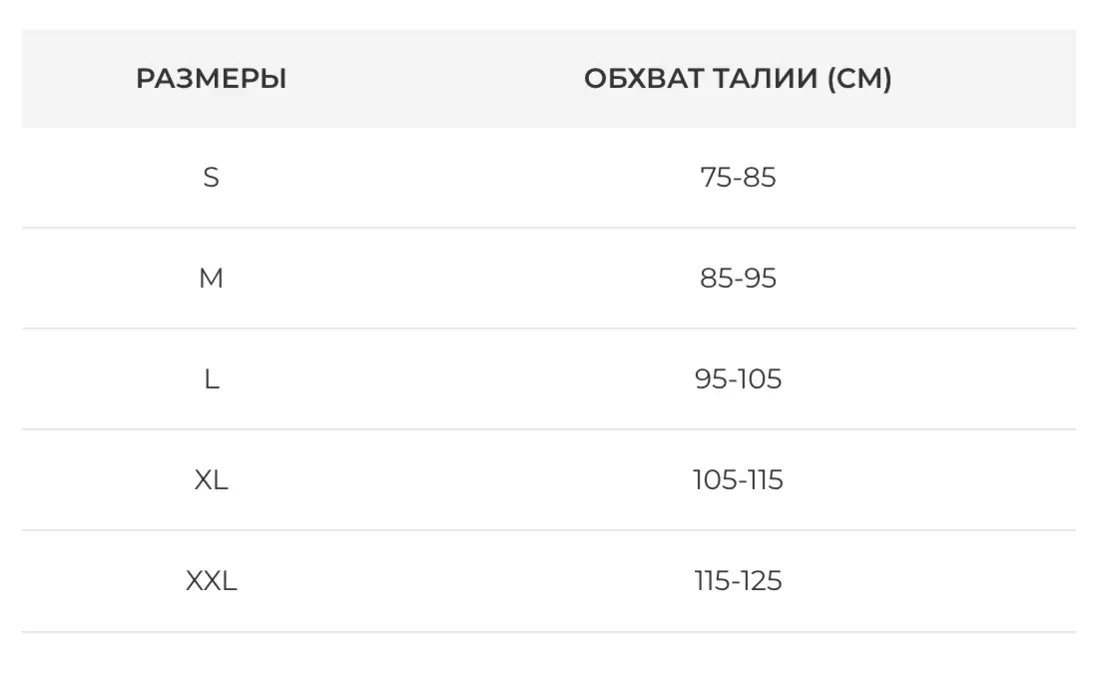 РАЗМЕРЫ ОБХВАТ ТАЛИИ (CM)