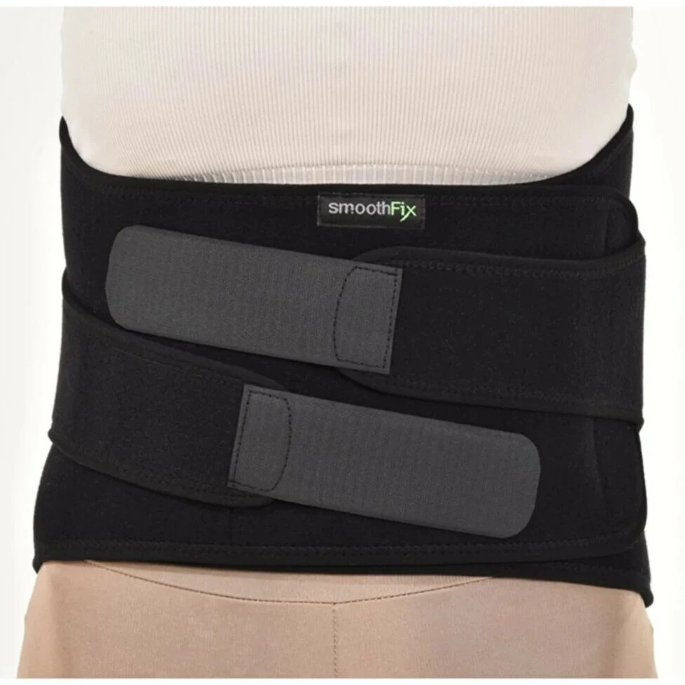 Бандаж имеет ремни, которые застегиваются спереди на липучках, позволяют регулировать усилие стабилизации. Обеспечивает устойчивость к сжатию и долговечность за счет эластичного трикотажа.
