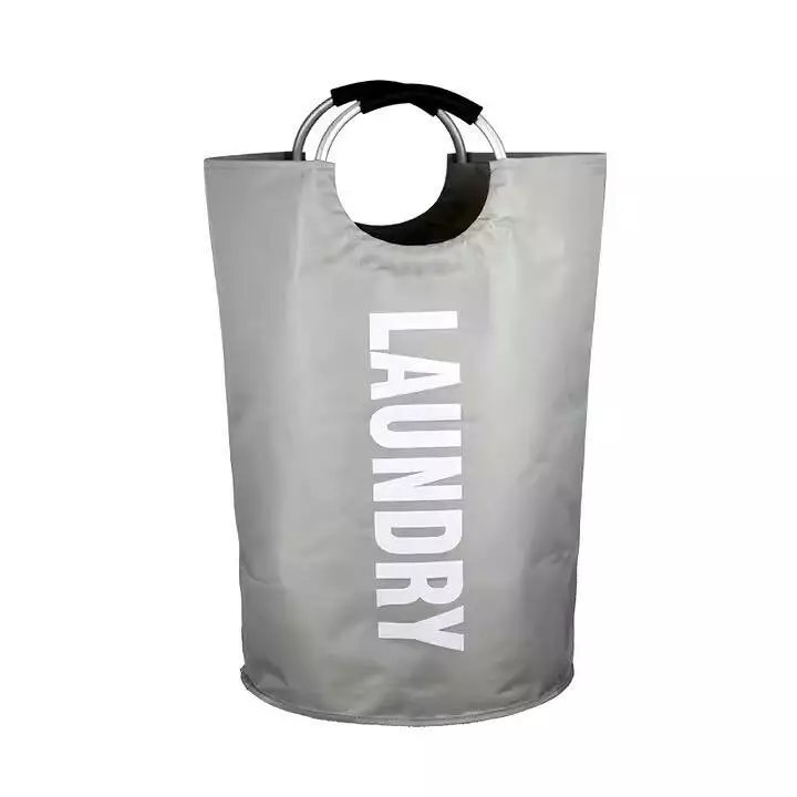 Корзина для белья в ванную, тканевая с алюминиевыми ручками серая