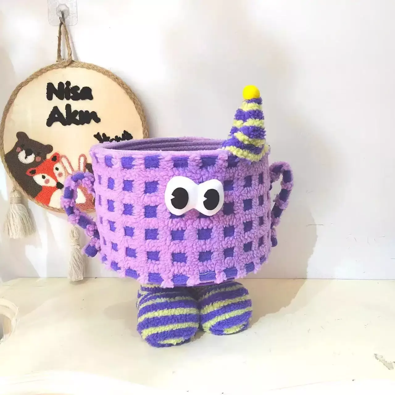 Корзина для игрушек плюшевый органайзер в детскую комнату мягкий для вещей и игрушек детская, фиолетовый