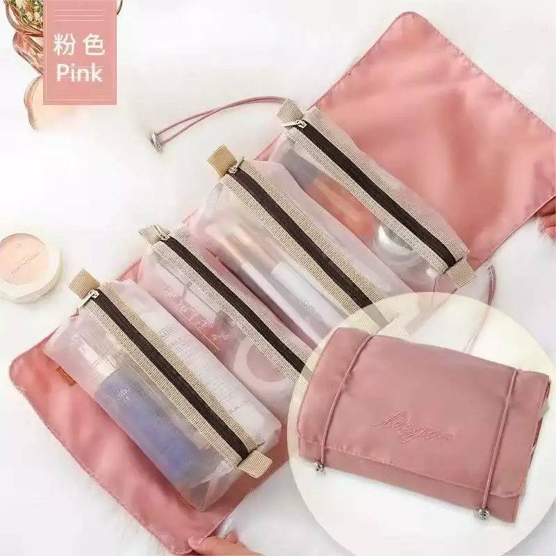 Косметичка для макияжа портативная, 4 съемных отделения на липучках, розовый