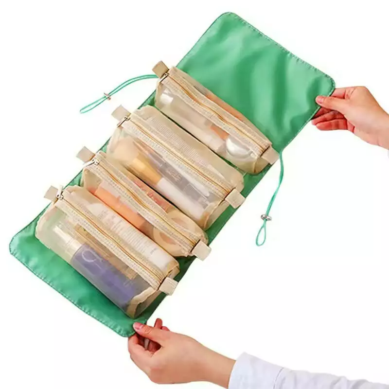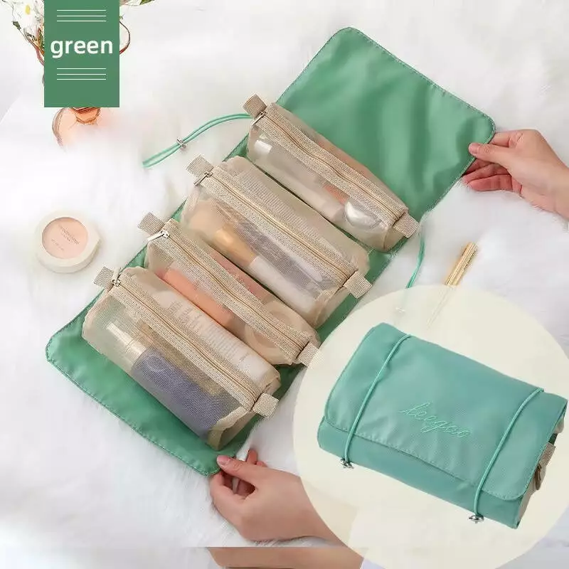 Косметичка для макияжа портативная, 4 съемных отделения на липучках, зеленая