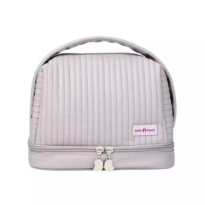 Косметичка имеет несколько отделений для удобного размещения косметических продуктов, что позволяет организовать все необходимые предметы таким образом, чтобы они были легко доступны.