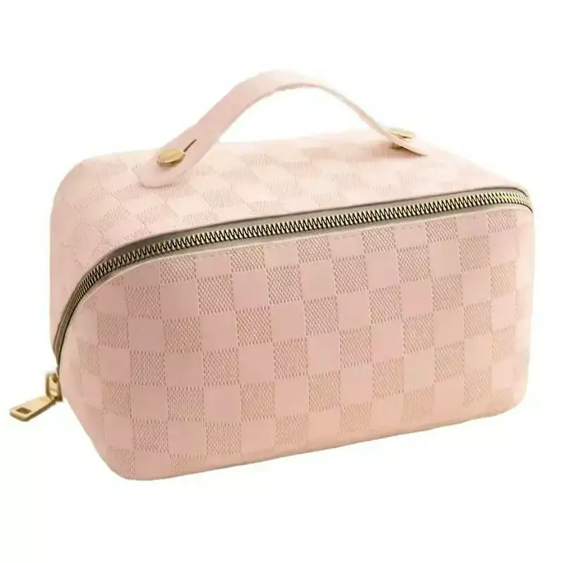 Косметичка на молнии из искусственной кожи, дорожная, розовая