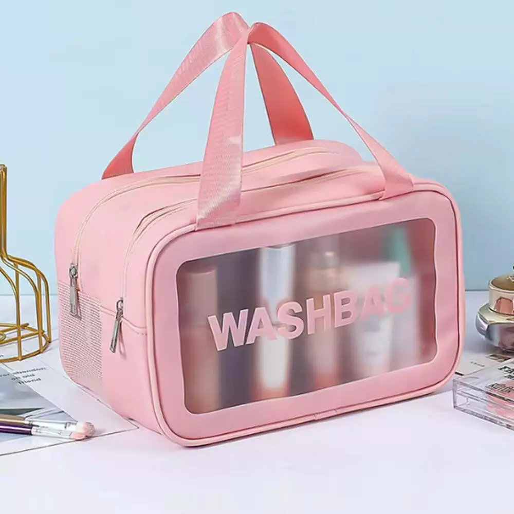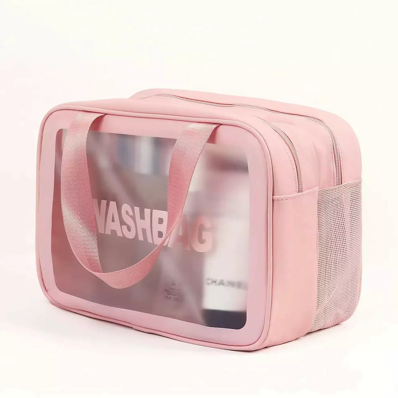 Косметичка в ванную комнату на 2 отделения для сухих и влажных вещей, розовая