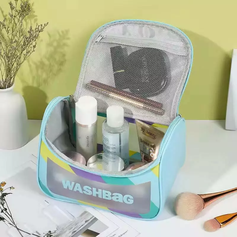 Косметичка женская прозрачная, для ванных пренадлежностей, дорожная, водонепроницаемая, голубая